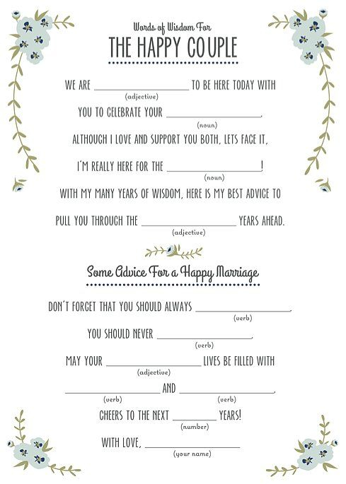 The marriage designed free printable is great for an wedding’s an ice pack-circuit breaker. It’s fun to gather all the completed mad libs before the end of the reception to ensure guests can read their hilarious responses to each other and enjoy the hilarious stories. This final selection of the completed mad libs is made at the stationers. Alternatively, taken at the conclusion of reception with a friend who is a reliable source.